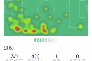 迪亚斯本场数据:1粒进球,3射1正,1次关键传球,评分6.8分