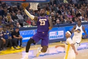 传射建功!詹姆斯连续反击得手并助攻队友扣篮 带队领先15分打停