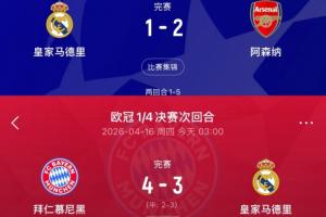 体育资讯04月16日讯 欧冠1/4决赛次回合,皇马客场3-4遭拜仁逆转,两回合4-6遭双杀,止步8强。