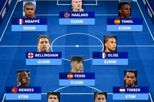 欧洲最贵首发11人:姆总、哈兰德、亚马尔6亿领衔,多纳鲁马入选