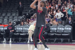 下一篇: 今天你防杰伦·格林?阿门赛前热身戴着耳机~惬意运球~